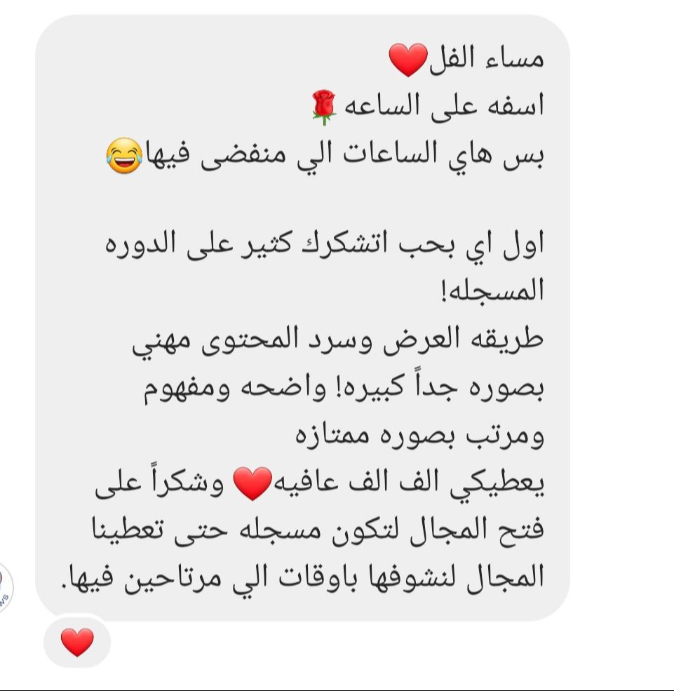 كورس شامل يصلك فوراً، مكوّن من أربع ساعات تعليمية تقومين بحضوره بوقتك الخاص